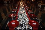 The beautiful color combination of black, red and white was carried throughout the space with vibrant florals and decor from Tami Winn.