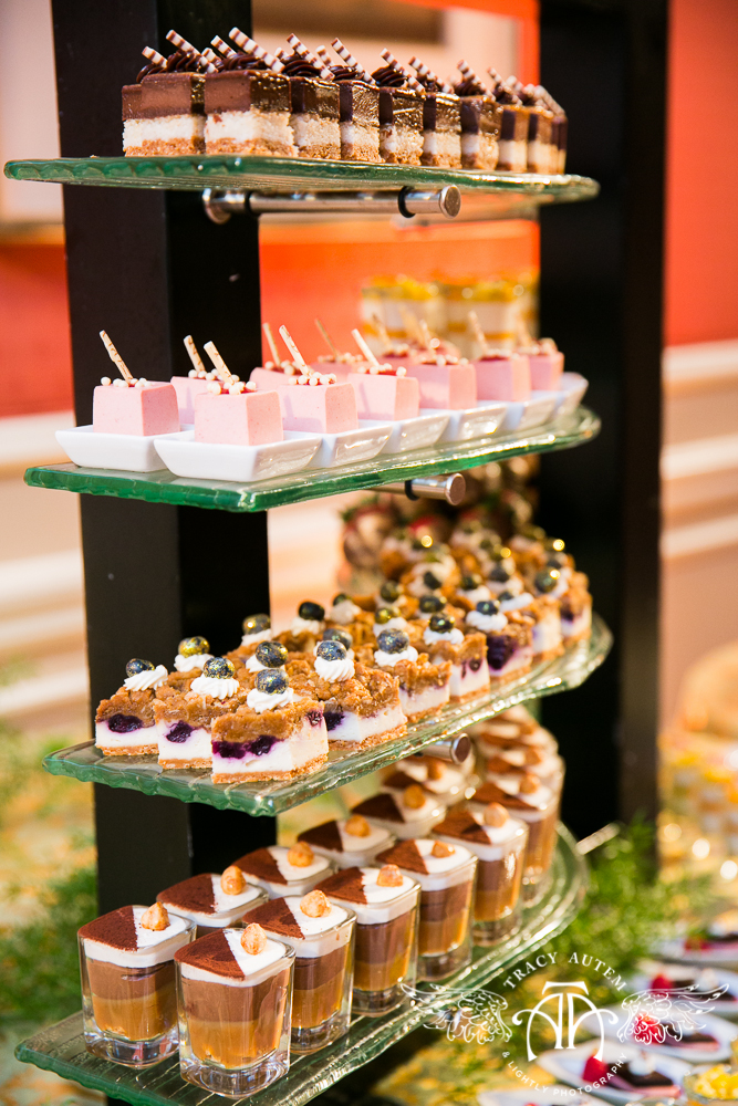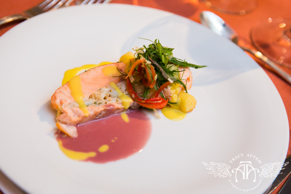 After Cocktail hour, guests moved into the Horizon for a plated dinner and presentation. The menu included Crab Stuffed King Salmon, Hearts of Romaine Caesar Salad, Medallion of Beef Tenderloin, and a sampling of mini desserts on display.