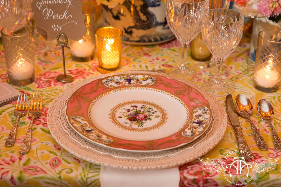 The place settings from POSH Couture Rentals were accented so perfectly by the floral linen from La Tavola, making this the perfect design for a bridesmaid lunch or a Spring reception. Clusters of low, lush arrangements from Jackson Durham really fill the table and make the setting quite intimate. Finally, the beautiful chairs and banquet seating from Perch Decor make this table setting anything but ordinary!
