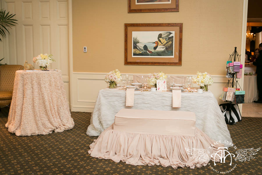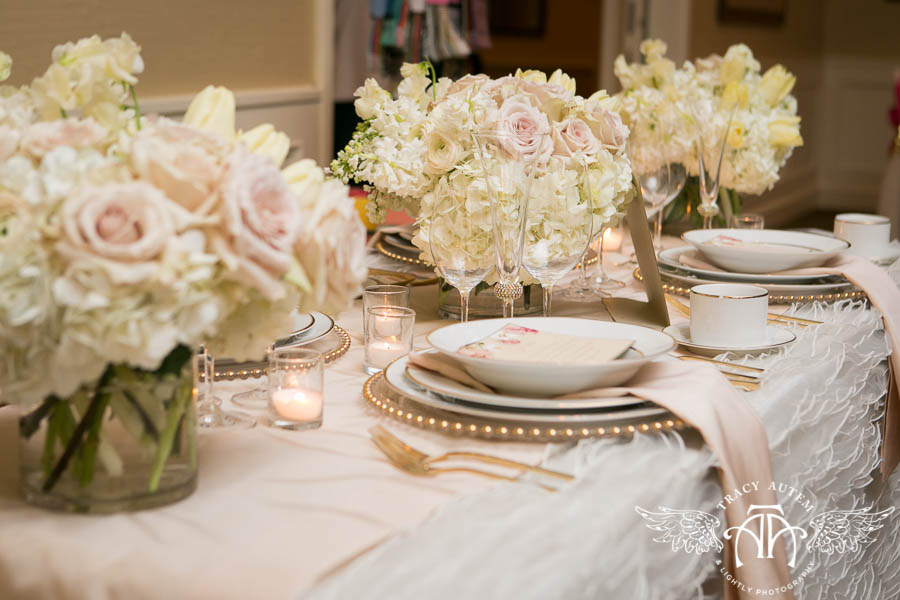 In addition to Weddings and Rehearsal Dinners, The Fort Worth Club also loves hosting Bridesmaid Luncheons and Showers. This feminine tablescape from La Tavola exemplifies the soft elegance of these fun-filled mid-day events and showcases some fabulous linens from their collection. All photos by Tracy Autem Photography.
