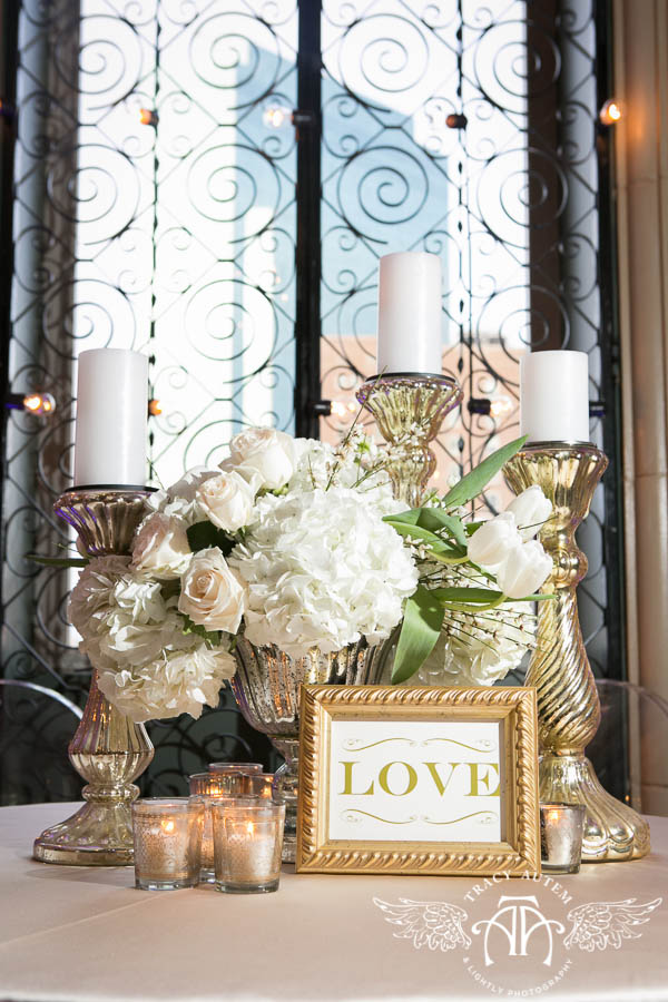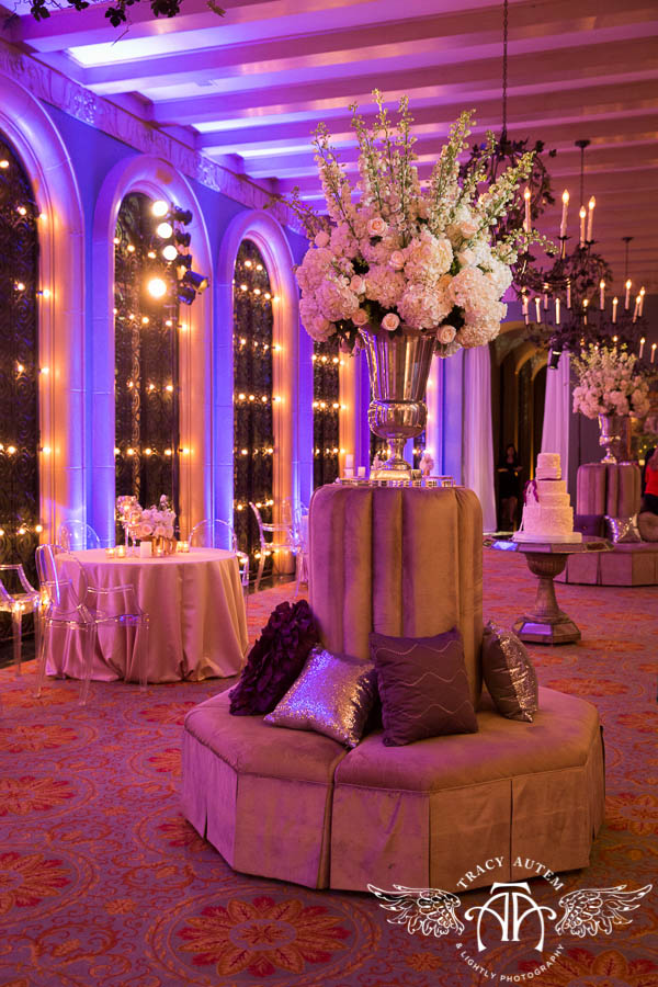 The Terrace is one of the most photographed areas of The Fort Worth Club. As the entrance to our historic Horizon Ballroom, this space is truly magical and elegant and we love to see event planners and designers showcase it’s beauty. Tami Winn, of Tami Winn Events, did just that at our Wedding and Special Event Showcase. By adding furniture, lighting, food stations and floral, the space was transformed into a reception space of its own. (Photography by Tracey Autem Photography)
