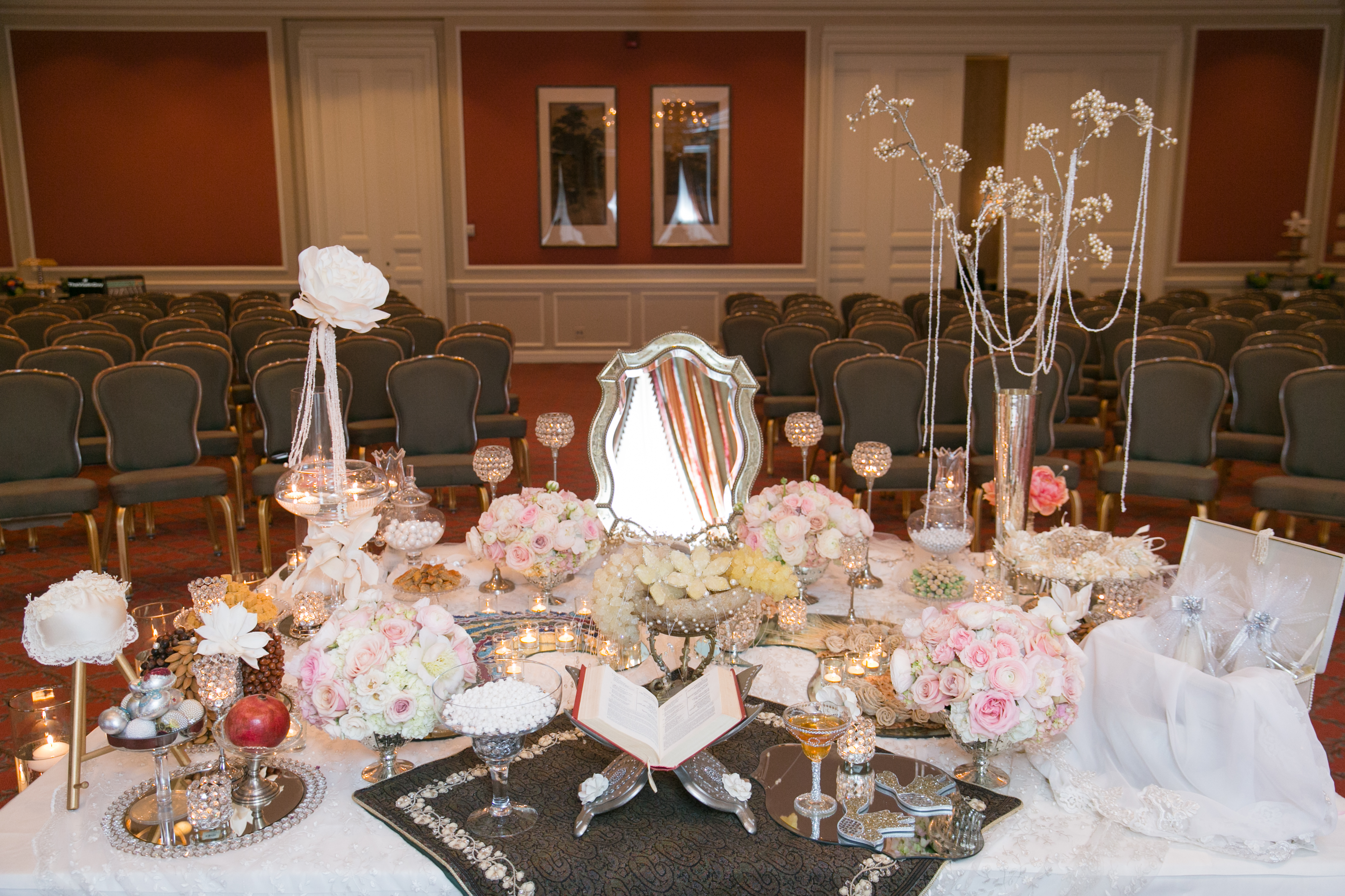 Yasmin and Scott both started the day getting ready at the Fort Worth Club with their bridesmaids and groomsmen. Be sure to ask your wedding coordinator how you can set-up a prep room for your bridal parties at the Club before your ceremony. After an off-site Christian ceremony, the guests arrived at The Fort Worth Club and started with hors d’oeurves and beverages in the Terrace before being escorted to the Trinity room for the traditional Persian ceremony.