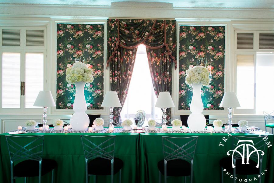 As guests arrived into the Fort Worth Club’s classical Horizon Ballroom for the reception, they were blown away by the abundant floral. The floral halo was not only a showstopper but accented perfectly to their custom white dance floor.