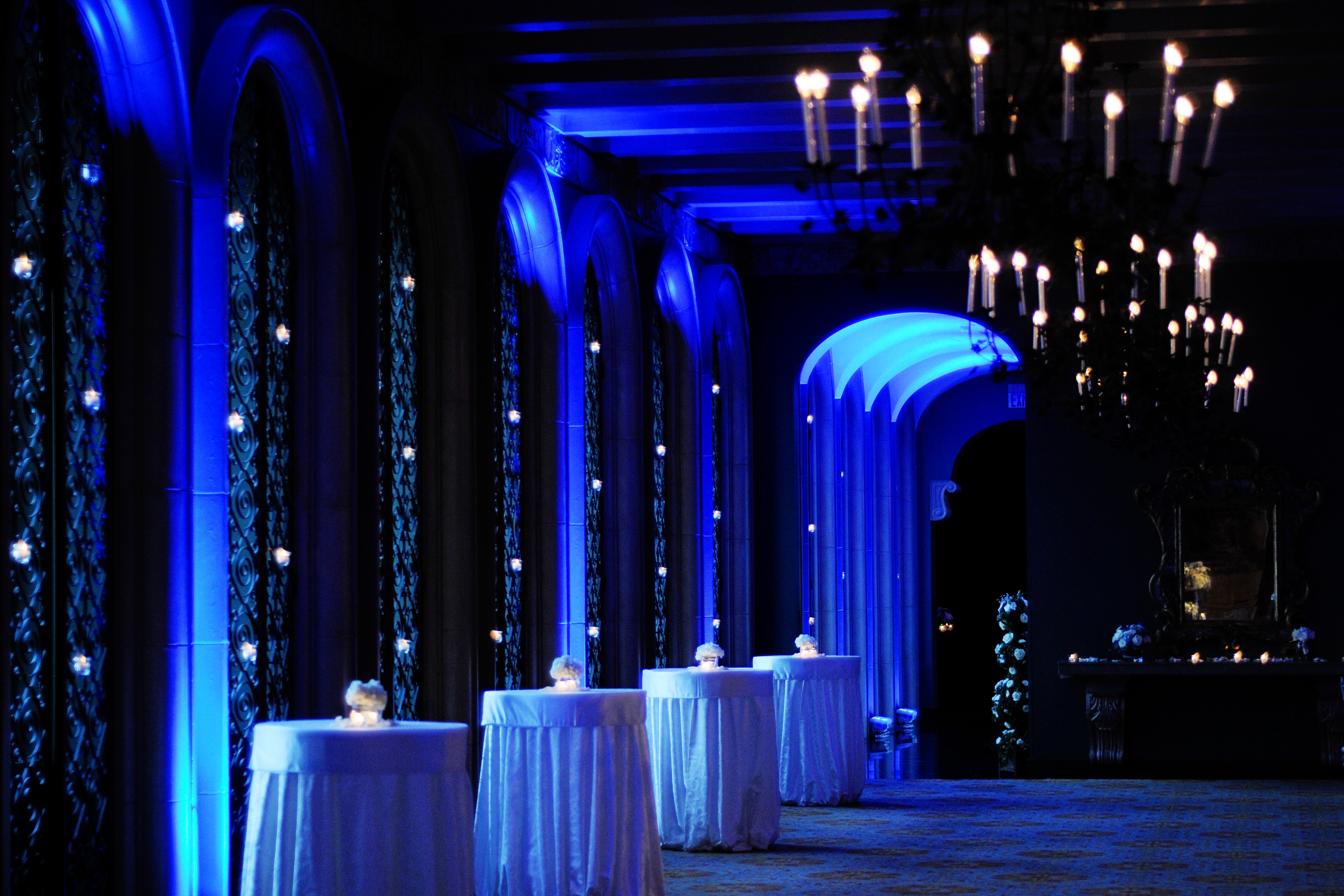 Brides always ask if they should add specialty lighting to their reception. While our ballrooms are beautiful on their own, you can really make a dramatic statement at your event using custom lighting throughout your reception space.